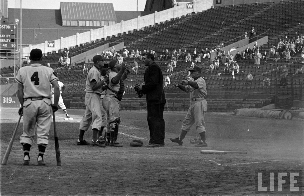 Thankfully, LIFE photographer George Silk happened to be at Braves Field that day doing a piece on the Dodgers, and captured the rhubarb (click on photos for larger images):