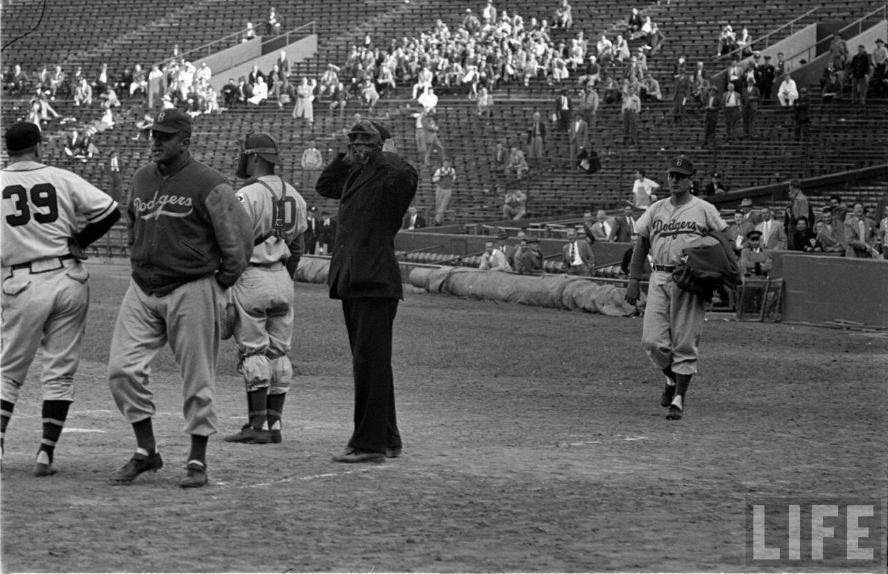 Unfortunately for the Brooks, they only had one more at-bat to stave off a bitter 4-3 defeat. As captured by LIFE, the ruckus had not calmed down in the 9th – the Dodger players in the field that were not ejected and now populated the half empty bench still made their voices heard: