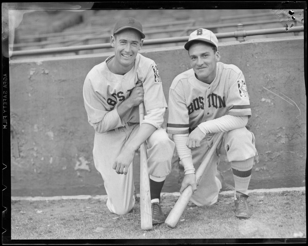 Boston’s young baseball stars of 1939: Ted Williams and Eddie Miller at Braves Field (Leslie Jones collection)