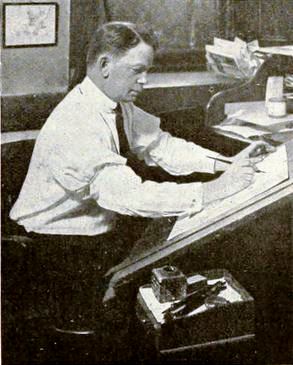Clare Briggs did many sports-related illustrations for the Chicago Tribune, but was primarily a fairly well-known syndicated cartoonist and comic-strip artist (mostly non-sports) of note in the early 20th century. With the Chicago paper since 1907, he moved to the New York Tribune in 1914, that eventually became the New York Herald Tribune (Briggs is seen below at work in 1919). He died in 1930 at the relatively young age of 54, with many of his popular strips carried on well after his death. More of Briggs’ playful baseball work will be shown on these pages in the future. Good Night!